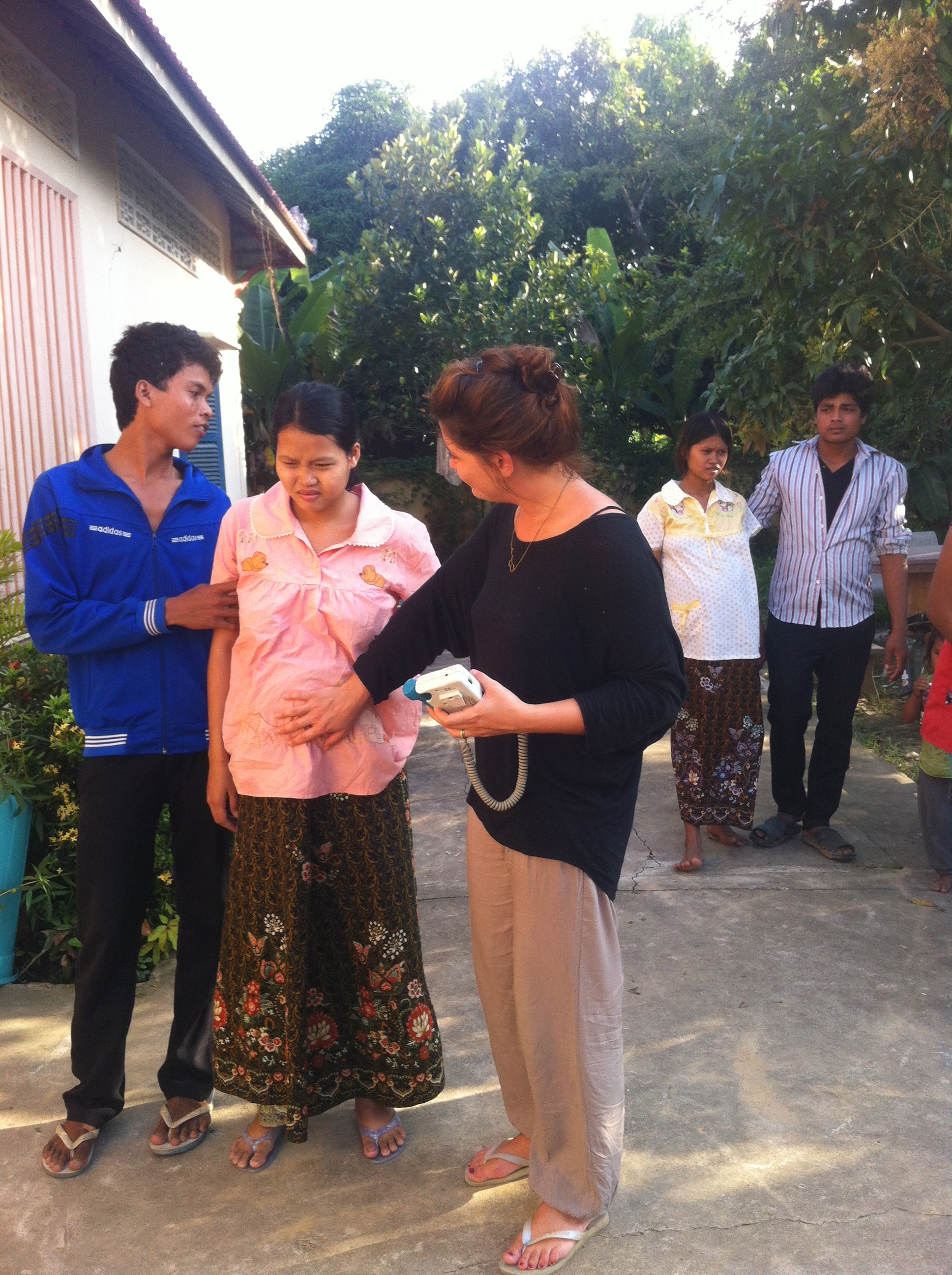 When the head was almost out I told the woman to slow down a little bit. The midwife and the grandmothers were rushing everything so Trish, the midwife who was there with me told them to be patient and quiet. Mama was absolutely brilliant in not pushing the baby out. I was showing the khmer midwife how to manage a hands of second stage, well quite easy cause we just needed to be patient and don’t touch the vagina every second or the baby head.